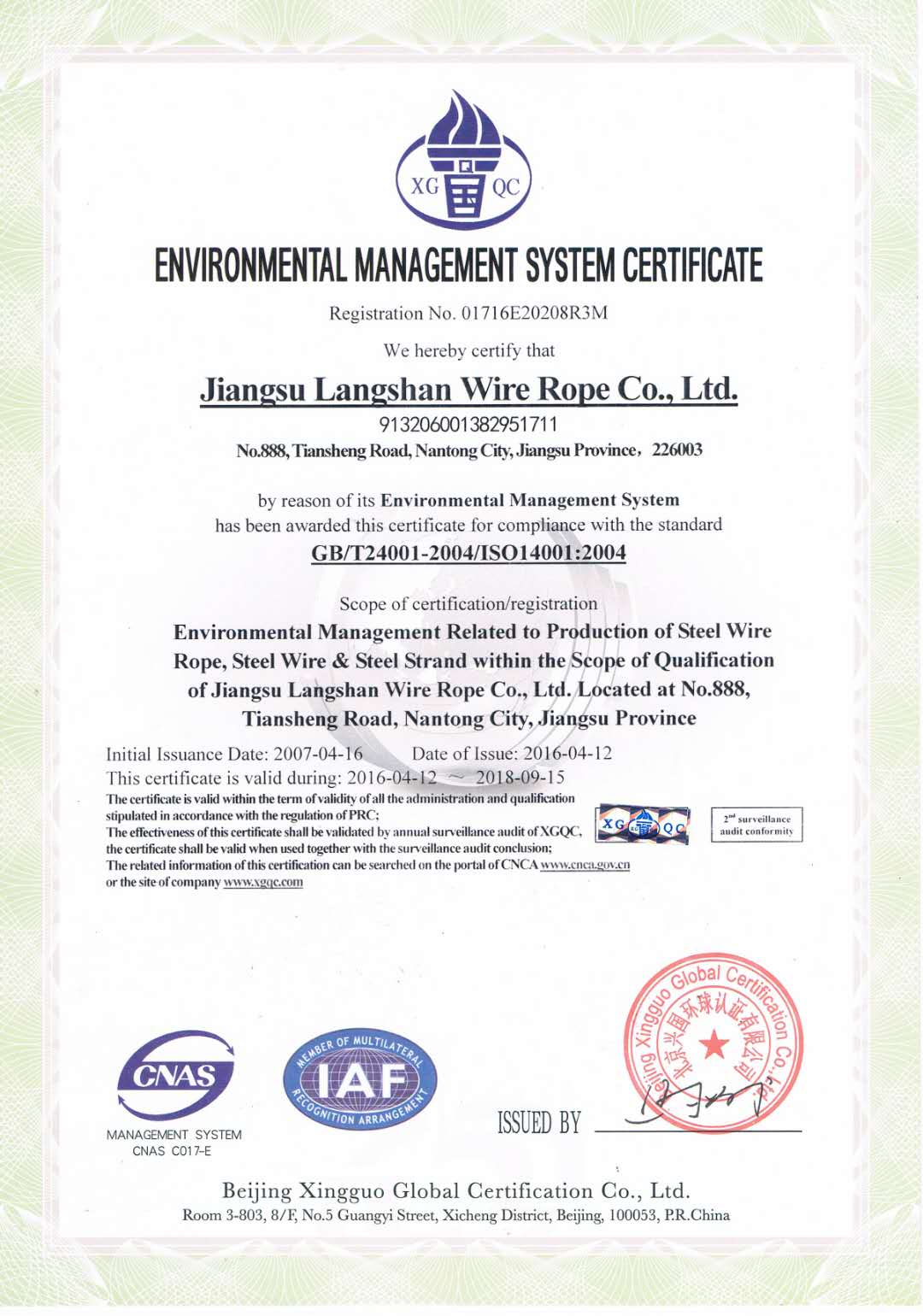 質(zhì)量管理體系認(rèn)證證書